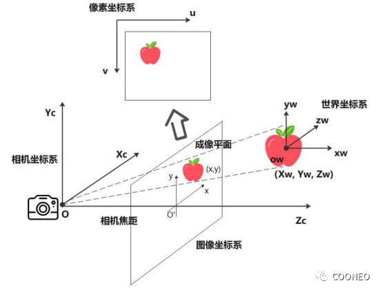 坐標(biāo)系轉(zhuǎn)換即將世界坐標(biāo)系中的3D真實點轉(zhuǎn)換到通常進行圖像處理時所使用的以像素為單位的2D圖像上。