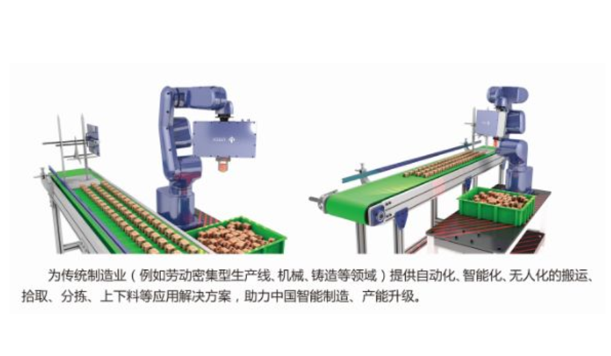 產(chǎn)品采用采用工業(yè)機(jī)械手和3D工業(yè)機(jī)器視覺檢測(cè)系統(tǒng)相結(jié)合的方式,3D工業(yè)機(jī)器視覺檢測(cè)系統(tǒng)可協(xié)助工業(yè)機(jī)器人實(shí)現(xiàn)3D智能抓取,專業(yè)針對(duì)散亂無序、堆放的工件設(shè)計(jì),通過對(duì)工件3D數(shù)據(jù)的高速掃描,形成高精度的三維點(diǎn)云數(shù)據(jù),結(jié)合圖像處理、點(diǎn)云分析、智能匹配、自主運(yùn)動(dòng)路徑規(guī)劃與防碰撞設(shè)計(jì) ,以實(shí)現(xiàn)機(jī)器人的精確抓取定位引導(dǎo),使工業(yè)機(jī)器人具備真正的立體視覺感知功能。